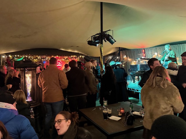 At 10pm, the pace lifted again as Nick The Fish took over with his unpredictable and energetic set. Jumping from Postman Pat to Britney Spears and AC DC, he kept the crowd laughing, singing, and dancing. DJ Count Hatstand kept the music flowing throughout the night and took centre stage at midnight to welcome in the New Year.